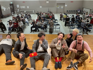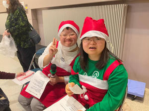 クリスマス会 11月23日(木・祝日)に厚別区民センター2階ホールで、だいぶ早目(笑)のクリスマス会を4年ぶりに開催しました。23家族62人の参加でした。 まだ、コロナ前のようなみんなでワイワイ交流するクリスマス会はできませんでしたが、札幌笑劇団さんに来ていただき、ステージを楽しみました。 当日の司会はダウン症のある本人たちが大活躍してくれました。そしてサンタさんも来てくれました! 短い時間でしたが、久しぶりにみんなで顔を合わせて、開催前にはたわいないおしゃべりも楽しみ、とても素敵なクリスマス会でした。 参加の皆さん、ありがとうございました。 (記 三好) |