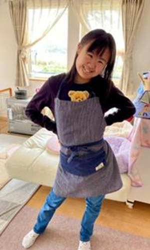 ママ〜♪ お手伝いしたい! とエプロン姿で現れたまどかです。 |