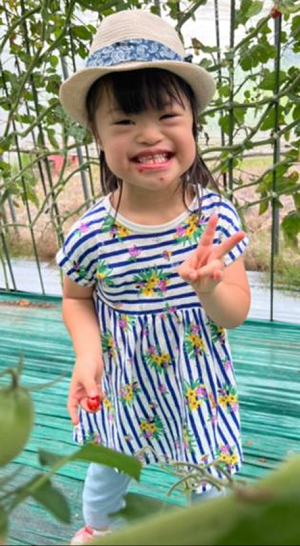 ミニトマト狩り 函館市 I・理沙さん 愛実ちゃん(5歳) 小鳩会の久しぶりの行事で、小鳩会会員でもある木村農園さんのミニトマト狩りに家族4人で参加させていただきました。 娘は張り切って受け取った袋を持ち、真っ赤なミニトマトを収穫していました。獲ったミニトマトは食べてもいいのだとわかるとひとつ食べ、さらに甘くて美味しいとわかるとひたすら獲っては食べ、すごく楽しんでい ました。獲る楽しさと、美味しいミニトマトを存分に堪能して時間はあっという間に過ぎました。 同時に、毎日暑いなか作業をしている農家さんには頭が下がり、子供達がおいしい野菜が食べられるありがたさも学ぶことが出来たので本当に良い経験となりました。ありがとうございました。 久々に皆さんにもお会いでき、嬉しかったです!! |